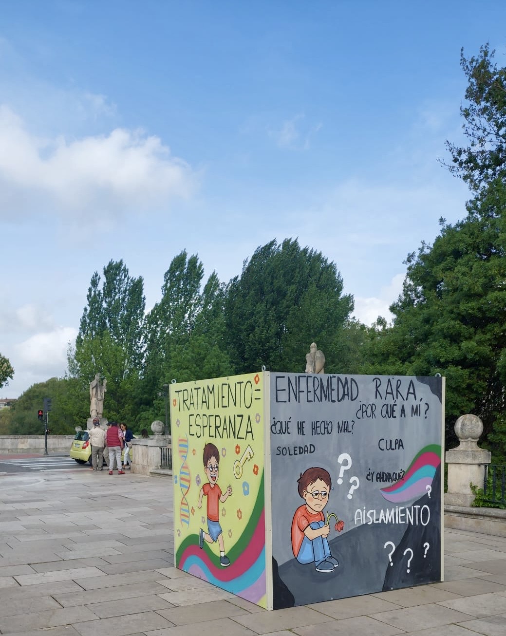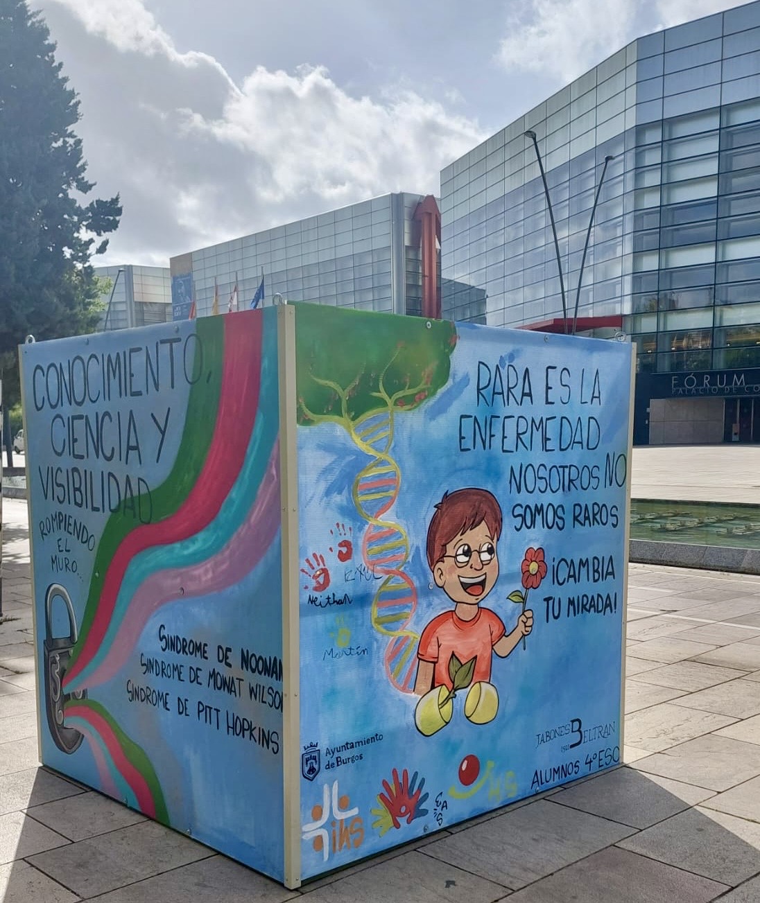 Esta sensibilización ha impulsado la realización de un cubo de 2x2 metros, con el que se da visibilidad a la realidad de las personas y familias que conviven con estas patologías. Asimismo, supone un reconocimiento por parte de la comunidad educativa al esfuerzo económico y emocional que implican.