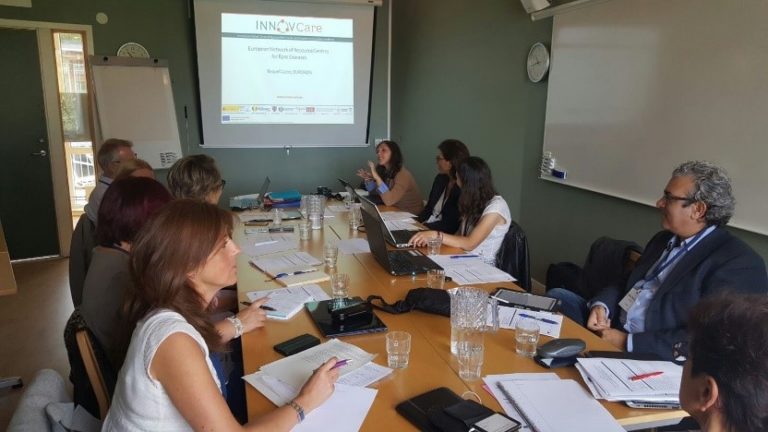 El Proyecto INNOVCare (2015-2018) representa un paso más, materializando dichas recomendaciones y proponiendo un Enfoque Innovador Centrando la atención en el Paciente para la provisión de Prestaciones Sociales. En este proyecto financiado por la UE, participan un total de seis países (España, Francia, Suecia, Eslovenia, Rumania, Austria) representados por prestigiosas entidades europeas de ámbito social, sanitario (EURORDIS, Karolinska Intstitute, Centro de Referencia de Rumania, Centro de Innoavación Social de Austria…), distribuidos en 9 grupos de trabajo. IMSERSO-CREER Centro de Referencia Estatal de Atención a personas con enfermedades raras y sus familias, lidera el consorcio como coordinador del proyecto. El grupo de trabajo CREER que participa como coordinadores en el proyecto está formado por Aitor Aparicio, Vanesa Sánchez y Marta Fonfría.